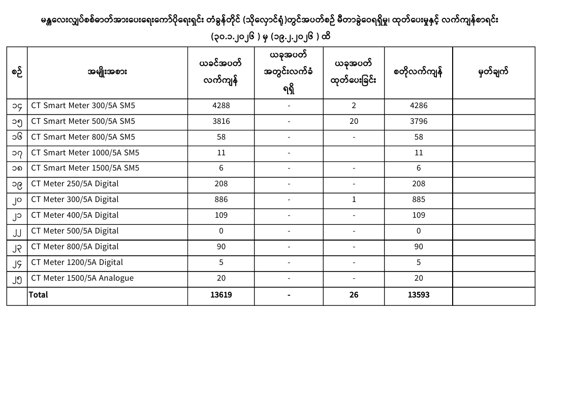 လျှစ်စစ်ဓာတ်အား ဖြန့်ဖြူးရေးဆိုင်ရာ အချက်အလက်များ