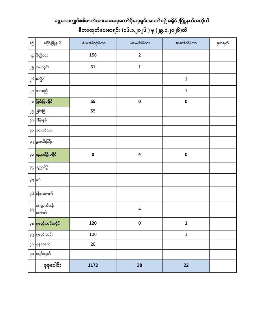 မြင်းခြံခရိုင်အတွင်း ဆက်သွယ်ရမည့် တယ်လီဖုန်း နံပါတ်များ