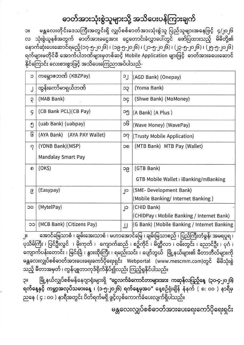 Online မှတစ်ဆင့် လျှပ်စစ်ဓာတ်အားခ ပေးဆောင်ခြင်း