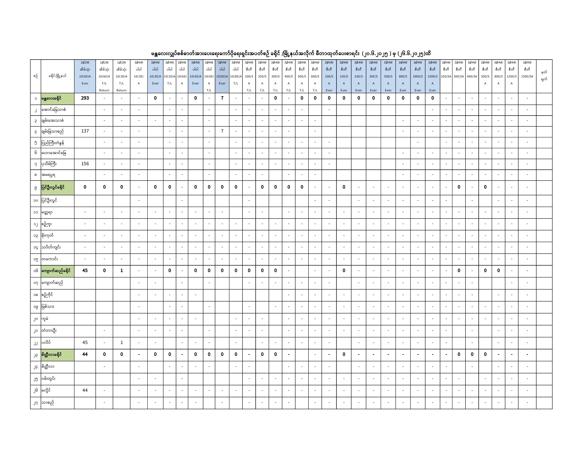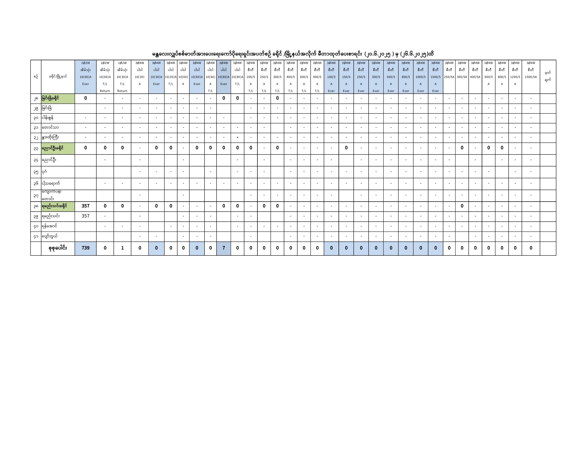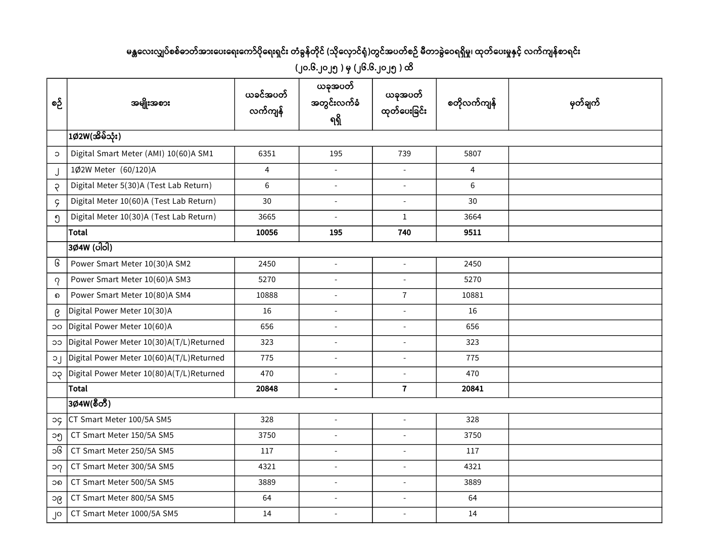 မန္တလေးလျှပ်စစ်ဓာတ်အားပေးရေးကော်ပိုရေးရှင်းတွင် ( 20.6.2025) ရက်နေ့မှ (26.6.2025) ရက်နေ့အထိ ခရိုင်/မြို့နယ်အလိုက် မီတာခွဲဝေရရှိမှု၊ ထုတ်ပေးမှု၊ လက်ကျန်စာရင်းများကို အောက်ပါအတိုင်းဖော်ပြအပ်ပါသည်-