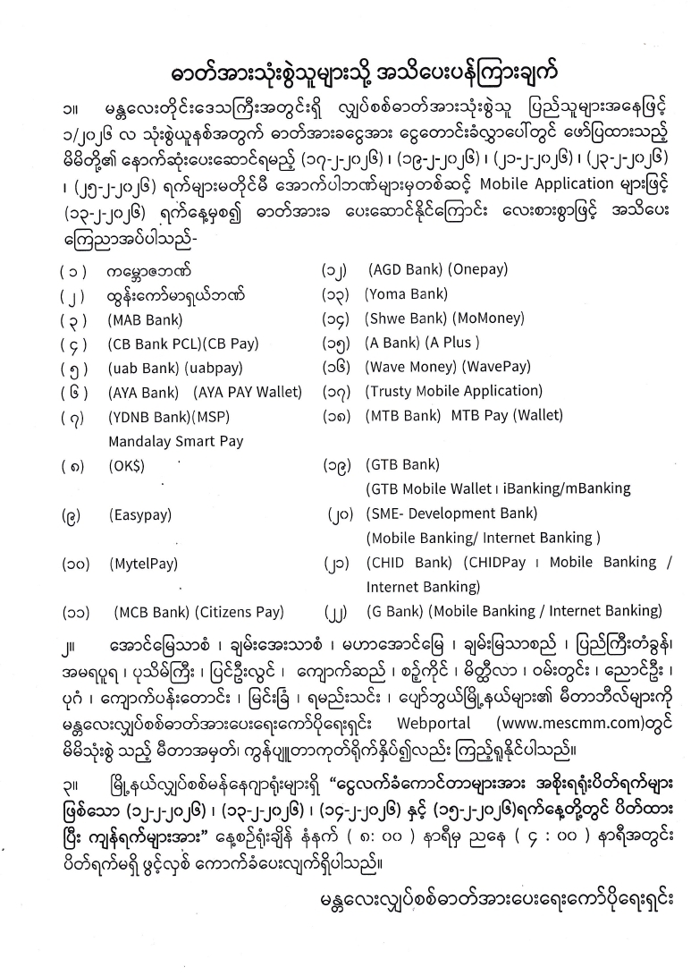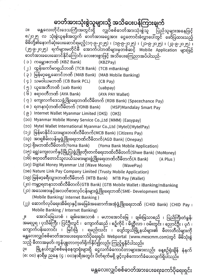 Online မှတစ်ဆင့် လျှပ်စစ်ဓာတ်အားခ ပေးဆောင်ခြင်း