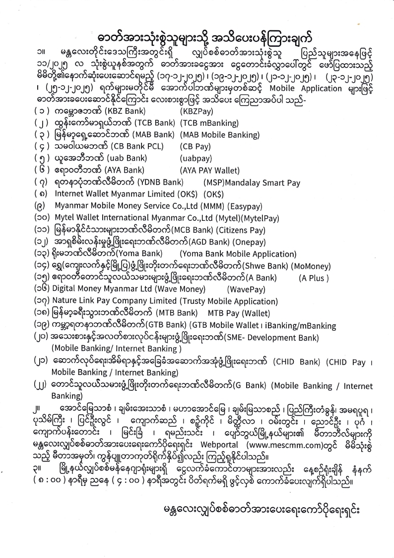 Online မှတစ်ဆင့် လျှပ်စစ်ဓာတ်အားခ ပေးဆောင်ခြင်း
