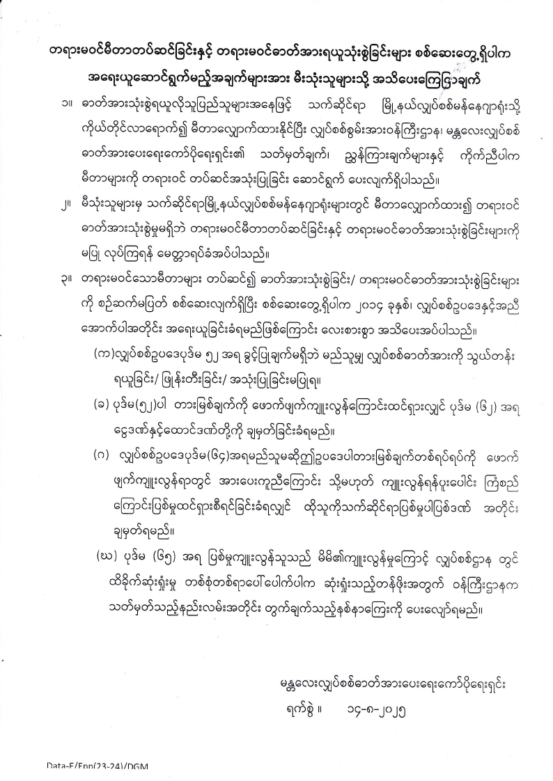 မီးသုံးသူများသို့ အသိပေးကြေငြာချက်