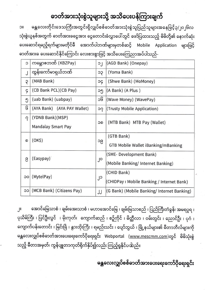 ဓာတ်အားသုံးစွဲသူများသို့ အသိပေးပန်ကြားချက်