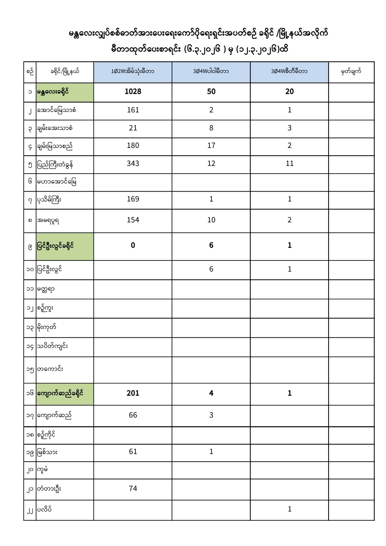 ကျောက်ဆည်ခရိုင်အတွင်း ဆက်သွယ်ရမည့် တယ်လီဖုန်း နံပါတ်များ